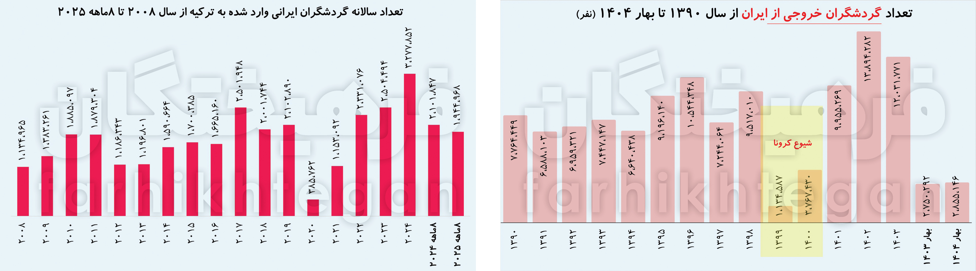 سفر 2 میلیون ایرانی به ترکیه طی 8 ماهه سال 2025