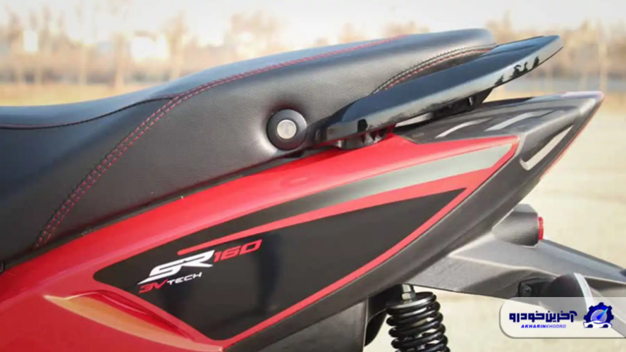 اگر توجهی به بخش انتهای زین موتورسیکلت آپریلیا SR 160 داشته باشیم، شاهد یک دستگیره نسبتا کوچک هستیم که میتواند تا حدودی به حفظ تعادل ترک نشین کمک کند. در فضای زیر زین شاهد یک فضای ذخیرهسازی نسبتا محدود و همچنین باک این موتور سیکلت هستیم. به طور کلی با توجه به اینکه موتور سیکلت آپریلیا SR 160 از جمله موتور سیکلتهای کلاس اسکوتر محسوب میشود، نمیتوان انتظار یک باک حجیم از آن را داشت و نهایت حجم مخزن سوخت این موتور ۶.۵ لیتر است. چراغ عقب آپریلیا SR 160 تا حدودی کوچک به نظر میرسد و از نوع هالوژنی است، ولی در حالت کلی از کیفیت مطلوبی برخوردار است و نمیتوان ایراد چندانی به آن گرفت. اگر توجهی به قسمت بدنه نیز داشته باشیم، شاهد پوشیده شدن تمامی اجزای موتور سیکلت توسط فلاپها هستیم که از ایجاد نمای بد جلوگیری کرده است. وزن خشک این موتور سیکلت به طور کلی ۱۱۸ کیلوگرم محسوب میشود، ولی اگر مایعاتی مثل روغن و بنزین را در نظر بگیریم این وزن افزایش پیدا خواهد کرد.