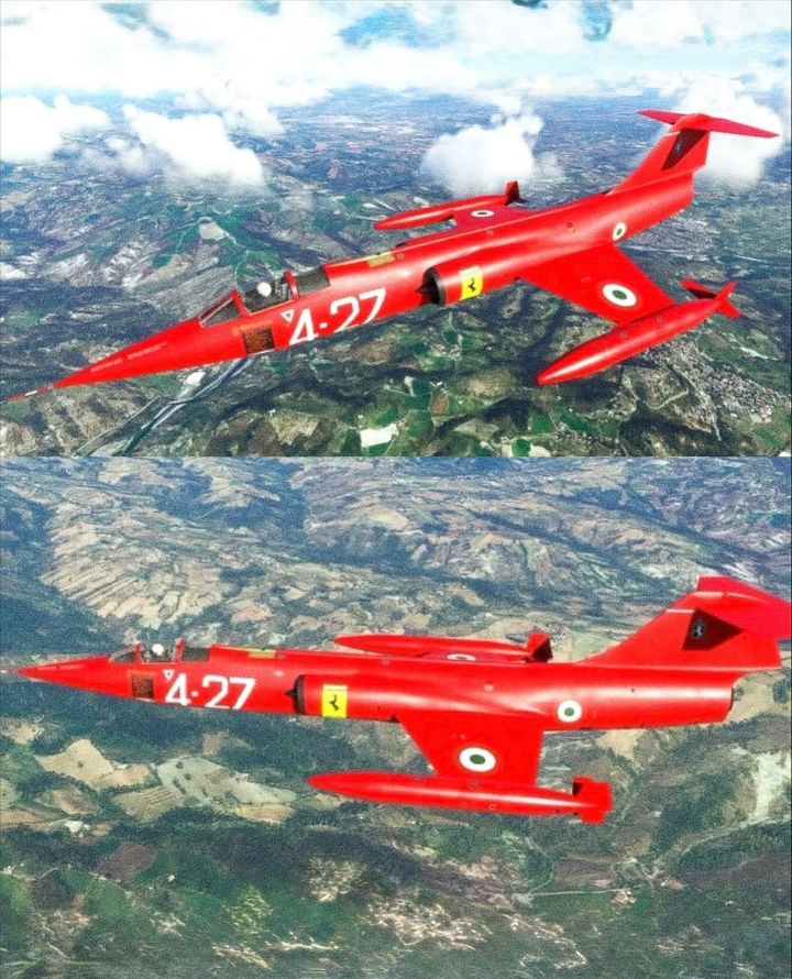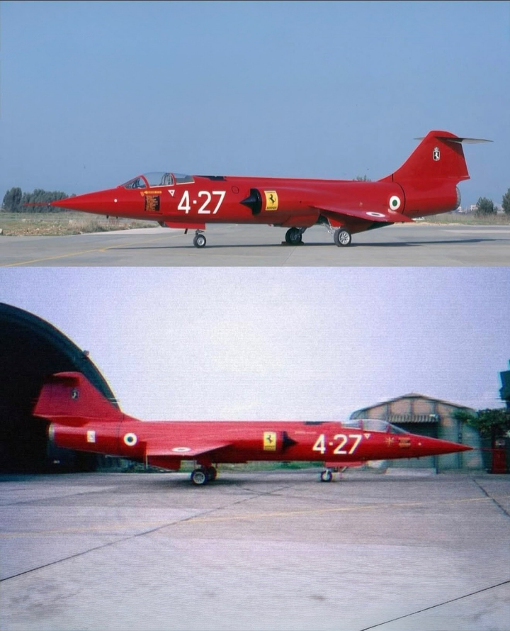 این هواپیمای از خدمت خارج شده به مناسبت گرامیداشت رقابت نمادین سال ۱۹۸۱، میان خودروی ۱۲۶ CK رانده شده توسط ژیل ویلنوو (ستاره تیم اتومبیل رانی اسکودریا فراری) و یک فروند جنگنده استارفایتر در پایگاه هوایی نظامی ایستراِنا، رنگآمیزی شد و به فراری تقدیم گردید.