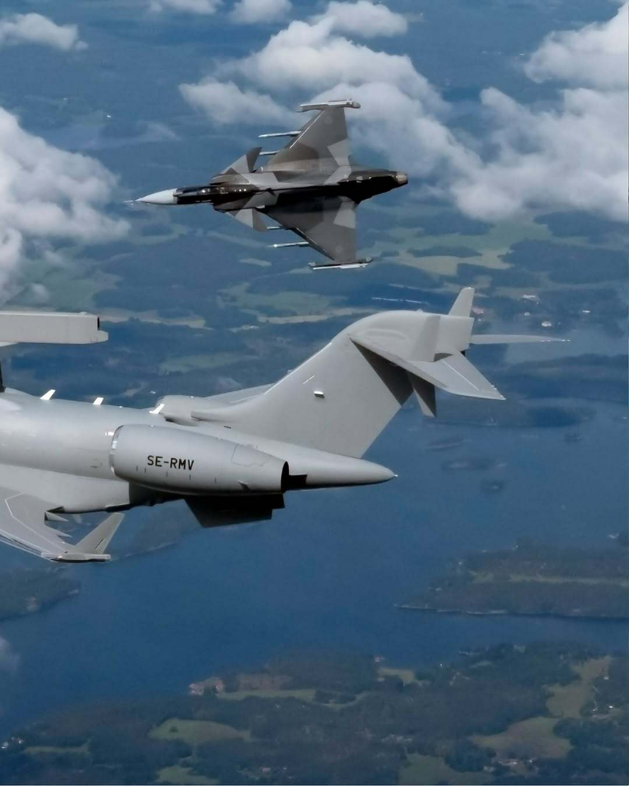 عصر ایران/ انتشار تصویری خیرهکننده از پرواز دوشادوش سامانه راداری «گلوبالآی» (GlobalEye) و جنگنده «گریپن» (Gripen) توجهها را به خود جلب کرد.