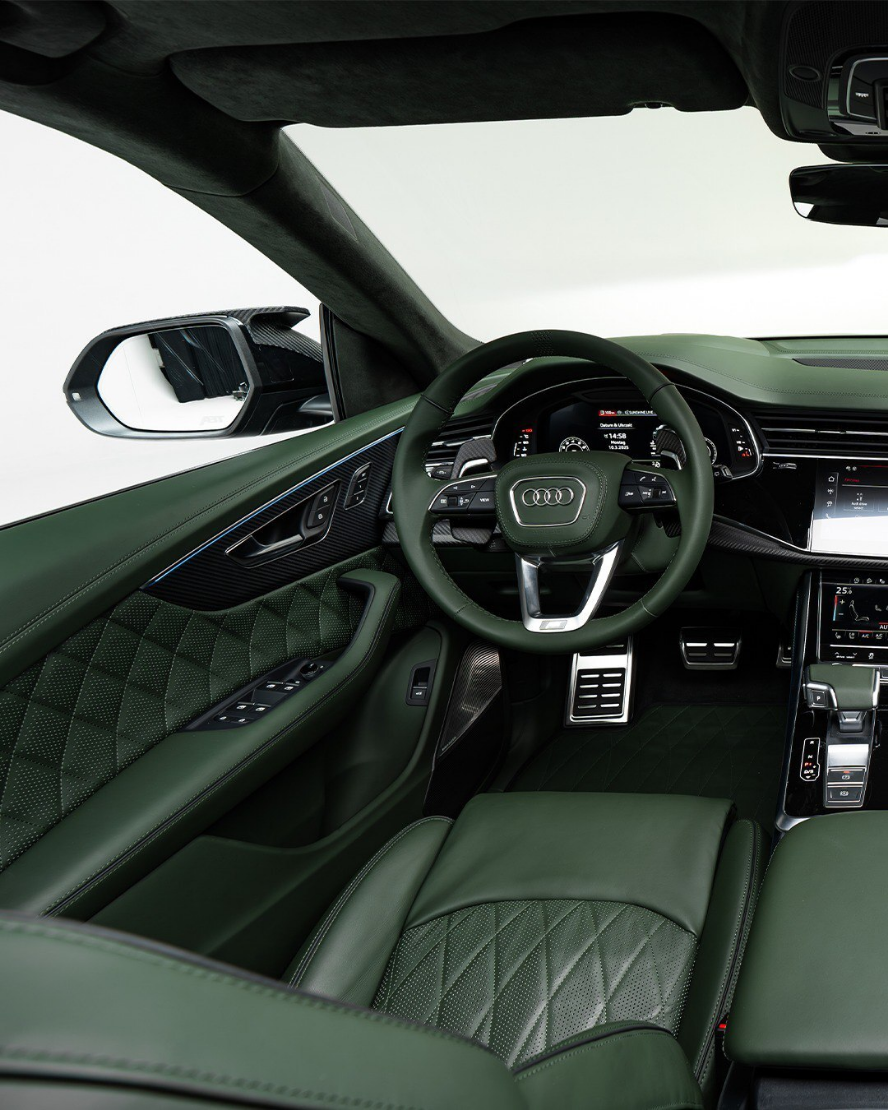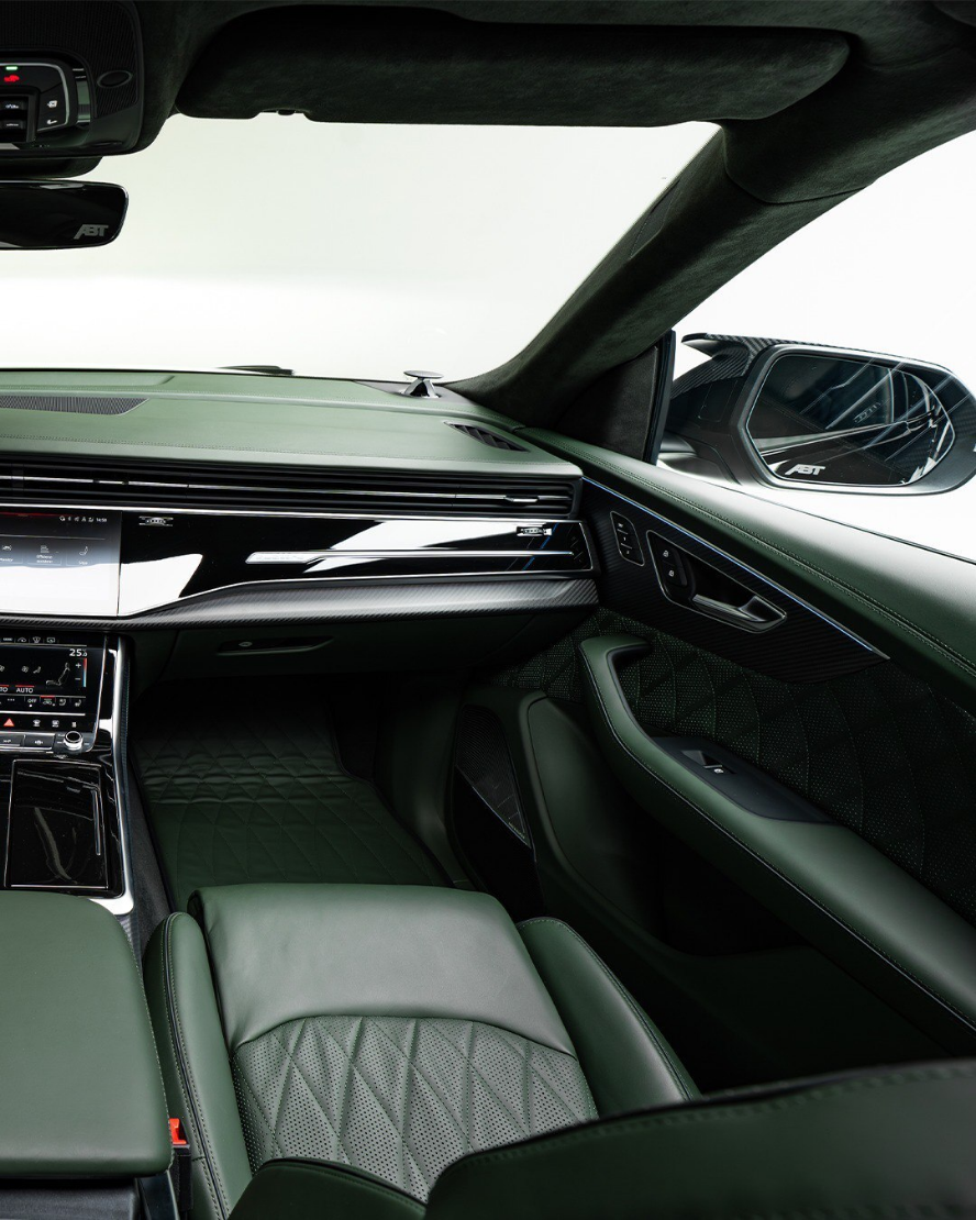 عصر ایران/ آئودی RSQ8 لِگِسی اِدیشن تیونینگ شده توسط شرکت ABT با قدرت فوقالعاده ۷۶۰ اسب بخار و گشتاور ۹۸۰ نیوتنمتر، و با فضای داخلی شخصیسازیشده به رنگ سبز مسابقهای (Racing Green) یک دلبر آهنی بسیار خاص و متفاوت است.