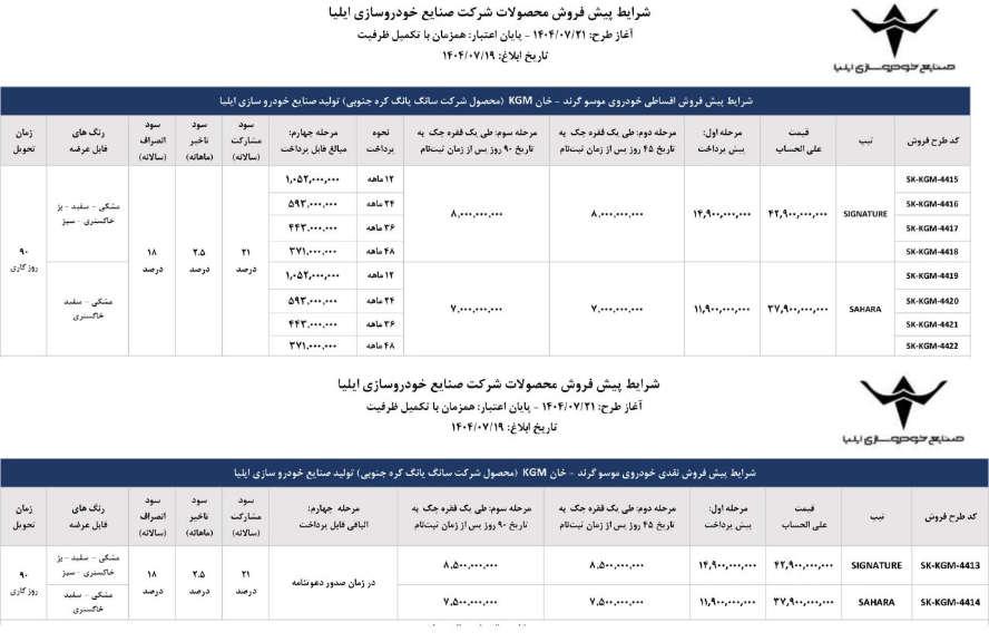آخرین خودرو/ صنایع خودروسازی ایلیا، شرایط فروش موسو گرند خان را ویژه مهرماه ۱۴۰۴ اعلام کرده و قرار است این خودرو را به صورت نقدی و اقساطی به فروش برساند.