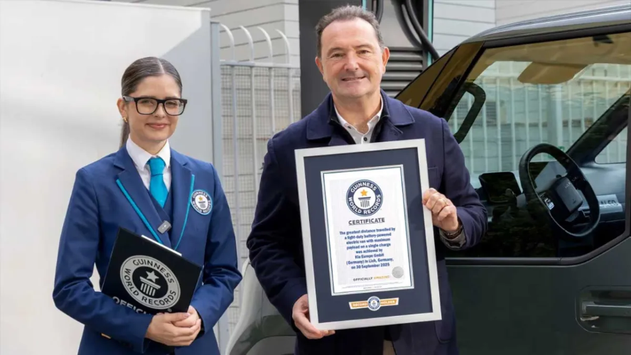 کیا با ون برقی جدید PV5 نامش را در کتاب رکوردهای جهانی گینس ثبت کرد. این ون باری موفق شد با حمل بار کامل، مسافت باورنکردنی ۶۹۳.۸۴ کیلومتر را با یکبار شارژ طی کند و رکورد رسمی «بیشترین مسافت پیموده شده توسط یک ون باری سبک برقی با یکبار شارژ و با حداکثر ظرفیت بار» را به نام خود ثبت کند. این دستاورد چشمگیر که در جادههای عمومی نزدیک فرانکفورت آلمان به دست آمد، جایگاه کیا را بهعنوان یک مدعی جدی در بازار خودروهای تجاری سبک برقی تثبیت میکند. این آزمون نفسگیر در یک مسیر عمومی به طول ۵۸ کیلومتر انجام شد که شامل شهرها، تقاطعها، چراغهای راهنمایی و ترافیک عادی روزمره بود.