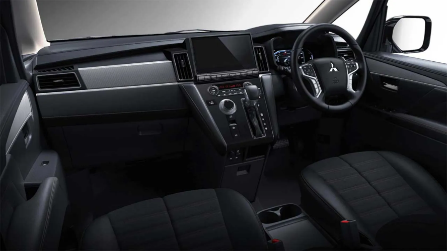 درون کابین نیز تغییرات خوشایندی رخ داده است. یک نمایشگر دیجیتال جدید جایگزین صفحه کیلومتر سنتی شده و صندلیهای مقاوم در برابر آب با پوشش چرم و جیر و دوختهای خاکیرنگ، حس کیفیت و دوام را القا میکنند. اضافه شدن درگاههای USB-C نیز یک بهروزرسانی مدرن و کاربردی برای سرنشینان است؛ اما مهمترین تغییر فنی، تجهیز دلیکای جدید به سیستم پیشرفتهٔ چهارچرخ محرک میتسوبیشی یعنی S-AWC است. این سیستم با کنترل مستقل نیروی محرکه و ترمز هر چهارچرخ، چسبندگی و پایداری خودرو را در هر شرایطی به حداکثر میرساند.