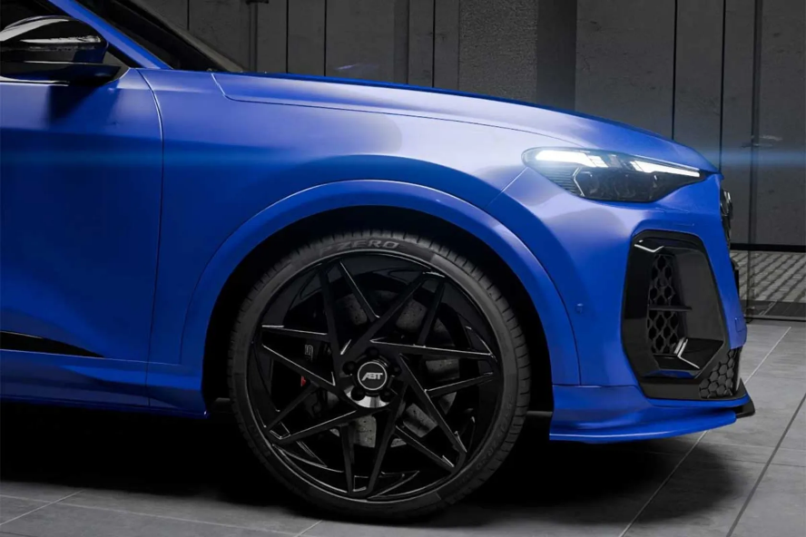 در نمای جلو، یک اسپویلر ظریف به سپر اضافه شده و فلاپ‌های گلگیر هم تریم جدیدی گرفته‌اند. عقب خودرو هم با دیفیوزر چهارپره و اسپویلر اسپرت‌تر روی در صندوق تزئین شده است. نشان ABT جای لوگوی SQ5 را روی در صندوق گرفته و بدنه با رنگ مات آبی و جزئیات مشکی، ظاهری خاص پیدا کرده است. طراحی جدید تعلیق، ارتفاع را تا ۴۵ میلی‌متر پایین می‌آورد و طبق گفته ABT، تجربه رانندگی را پویاتر می‌کند. رینگ‌های ۲۲ اینچی مشکی براق هم برای اولین بار روی این مدل دیده می‌شوند که حداقل ۶,۲۰۰ یورو قیمت دارند درحالی‌که رینگ‌های GR مشکی براق هم با قیمت ۴,۵۶۰ یورو در دسترس هستند.