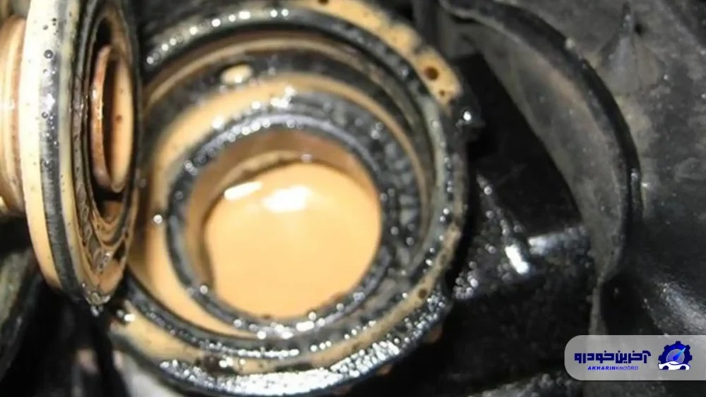 وجود روغن در آب یا برعکس (مایع شیریرنگ در درپوش روغن نشانه اختلاط است).