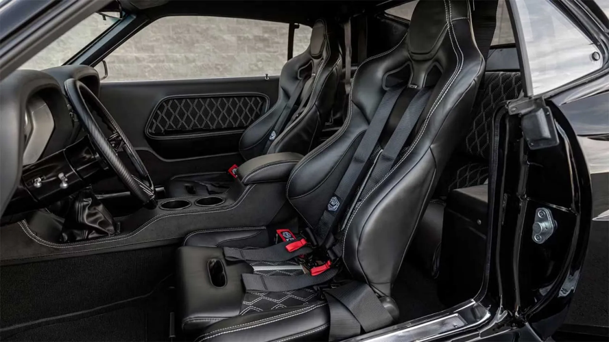 فضای داخلی نیز به همان اندازه بیرونی خودرو، خیرهکننده است. شرکت TMI Products که در طراحی داخلی خودروهای سفارشی شهرت دارد، کابین Scorched را طراحی کرده است. صندلیهای اسپرت مدرن با قابلیت نصب کمربند ایمنی پنج نقطهای، فرمان فیبر کربنی، نشانگرهای سفارشی و کنسول میانی دستساز، فضایی کاملاً امروزی و درعینحال هماهنگ با روح کلاسیک خودرو ایجاد کردهاند.
