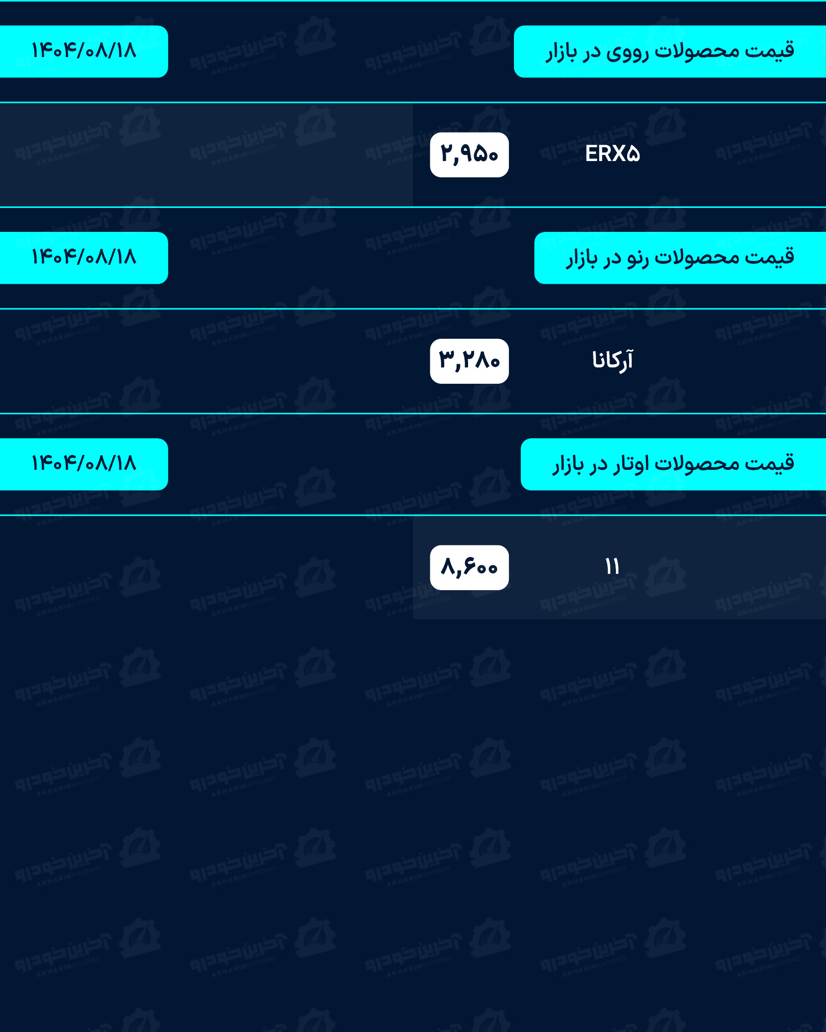 لیست قیمت خودو روزانه در سایت آخرین خودرو به روز رسانی می شود.