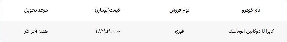 شرایط فروش کاپرا U اتوماتیک اعلام شد – آبان ۱۴۰۴