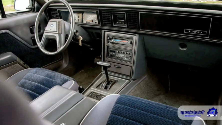 در کابین، خبری از روکشهای دکمهدار پشمی نبود؛ صندلیهای باکت، کنسولی با شیفتر کف برای گیربکس اتومات را احاطه کرده بودند. وقتی «فورد LTD» میشنوی، به صندلیهای جداگانه جلو با حمایت جانبی و کمرهای بادی فکر نمیکنی، مگر نه؟