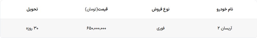 شرایط فروش و افزایش قیمت آریسان ۲ اعلام شد – آبان ۱۴۰۴