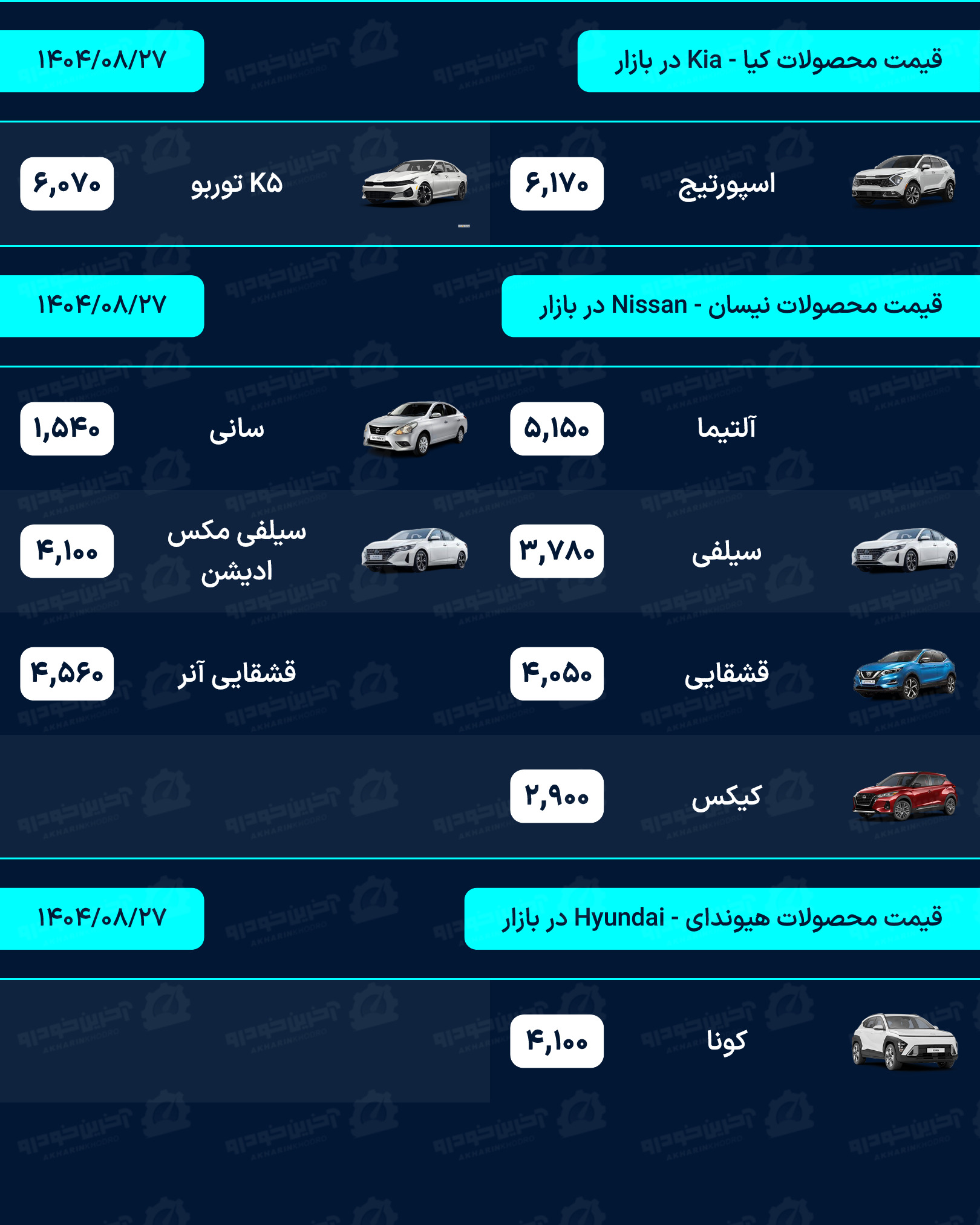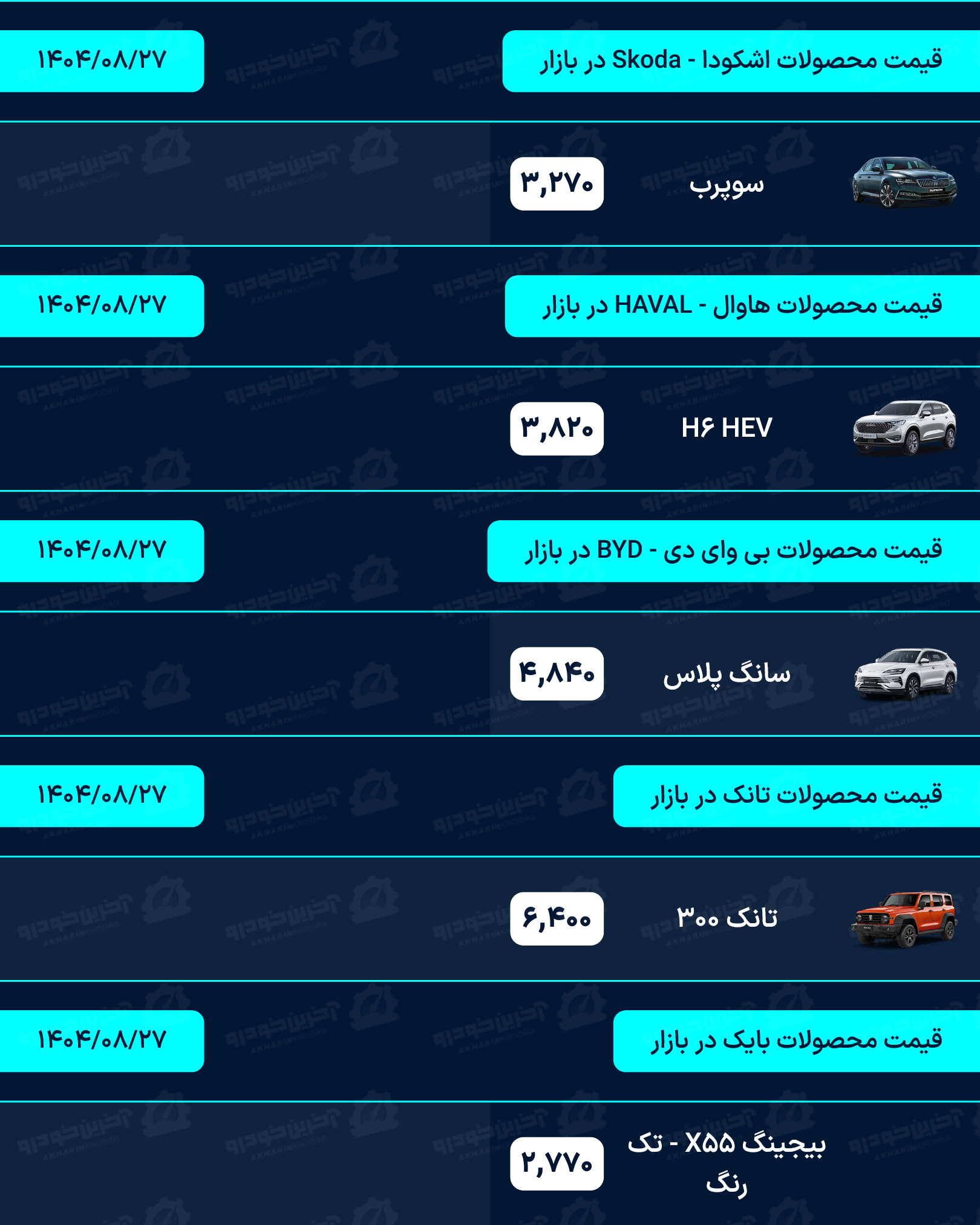 آخرین خودرو/لیستی کامل از قیمت خودروهای صفر کیلومتر داخلی، مونتاژی و وارداتی بازار امروز سه شنبه مورخ 27 آبان 1404