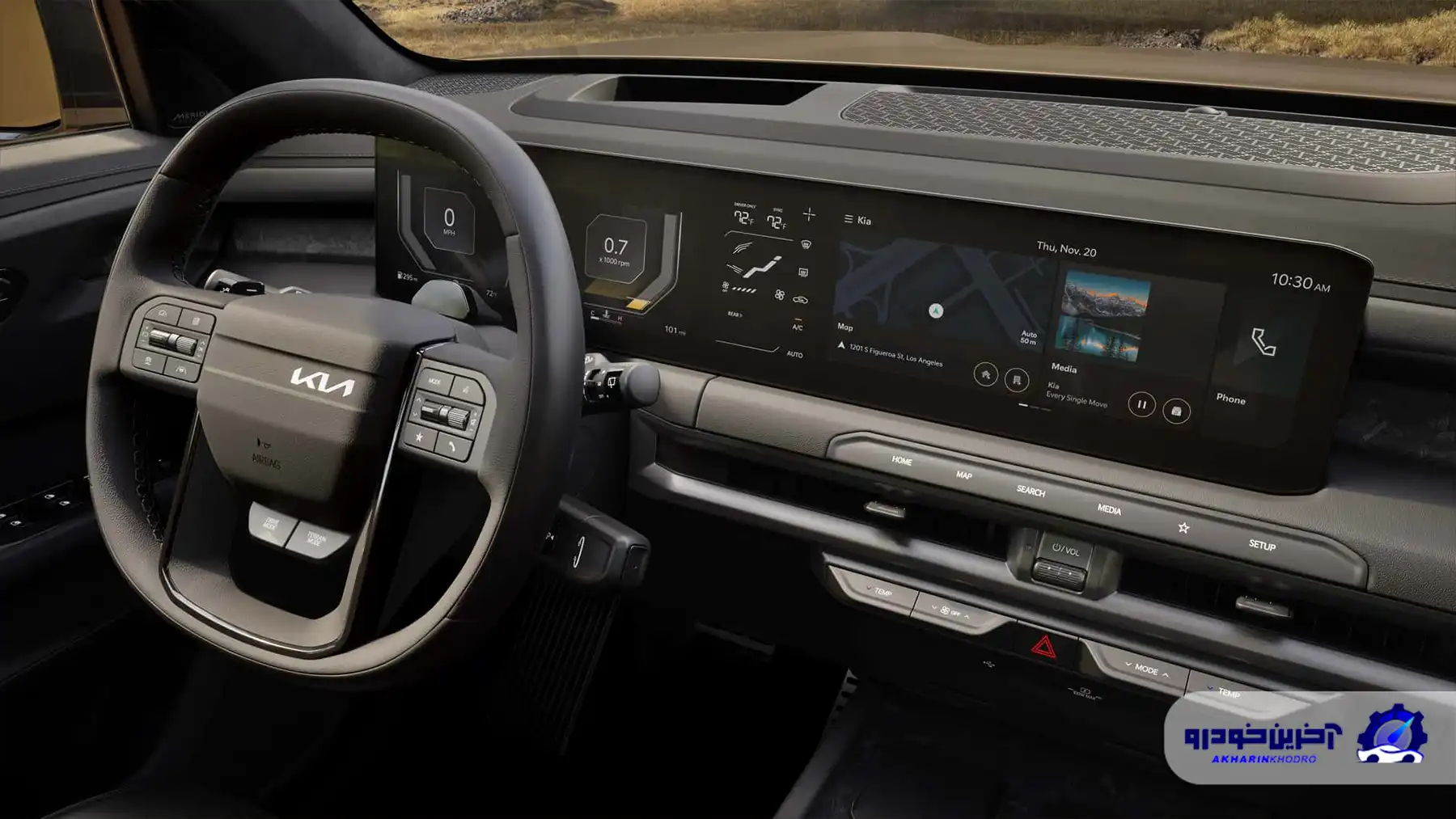 فضای داخلی تلوراید ۲۰۲۷ به شدت از طراحیهای مشابه در مدلهای الکتریکی کیا مانند EV9 الهام گرفته است. برای اولین بار، این خودرو به دو نمایشگر ۱۲.۳ اینچی تجهیز شده که درون پنلی مستطیلی شکل کنار یکدیگر نصب شدهاند. غربیلک فرمان طراحی جدیدی دارد و نسبت به قبل کاملاً مدرنتر به نظر میرسد. در کنار اینها باید گفت اهرم انتخاب وضعیت گیربکس به روی ستون فرمان منتقل شده که مشابه EV9 است.