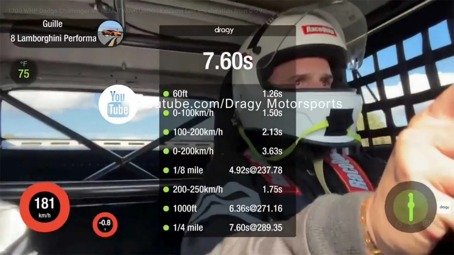 بر اساس دادههایی که در ویدیو ثبت شده، این چلنجر تقویتشده مسافت ۶۰ فوت ابتدایی (حدود ۱۸ متر) را در تنها ۱.۲۶ ثانیه طی کرده و شتابگیری از سرعت ۱۰۰ به ۲۴۰ کیلومتر بر ساعت را در ۲.۴۲ ثانیه به ثبت رسانده است. این اعداد نشاندهندهٔ نیروی ویرانگری هستند که راننده برای کنترل آن تلاش میکند. این خودروی خاص که وزنی معادل ۱۵۸۷ کیلوگرم دارد، فراتر از یک مدل استاندارد است. مجهز شدن به سیستم توئین توربو، دریچهٔ کاپوت بزرگ برای هوارسانی بهتر، رول کیج داخل کابین و لاستیک مخصوص درگ، تنها بخشی از تغییرات گستردهٔ آن به شمار میروند.