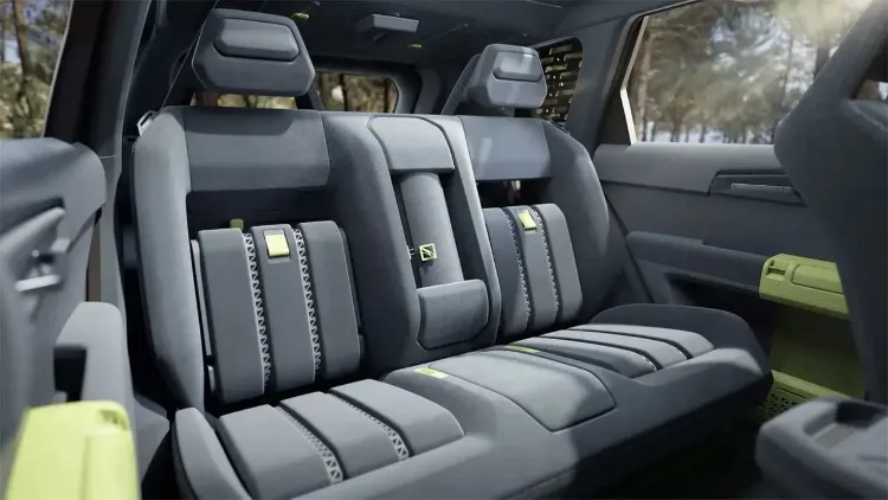 در داخل کابین کیا EV5 WKNDR تغییرات داخلی بسیار فراتر از یک پالت رنگی تازه است. طراحان یک نمایشگر عریض سرتاسری مقابل سرنشین جلو نصب کردهاند که در کنار پنل دیجیتال پشت فرمان و فرمان جدید، محیطی کاملاً مدرن و متفاوت ایجاد کرده است. کنسول مرکزی اصلاح شده و دریچههای تهویه طراحی متفاوتی دارند. روکشهای صندلی با بافت سهب عدی و ترکیب رنگی جدید نیز حس آیندهنگرانه کابین را تقویت میکنند.