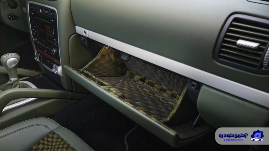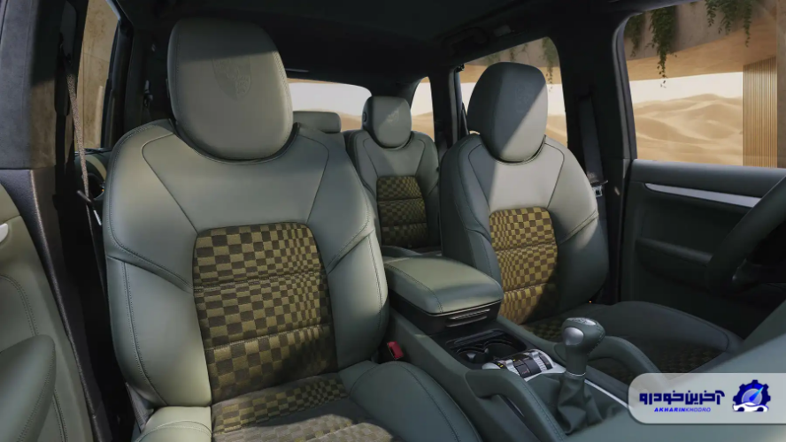 در داخل کابین پورشه کابین GTS تغییرات چشمگیرتر هستند. بخش Sonderwunsch از چرم سبز انگلیسی در کنار پارچه نمادین نقش پاشا و ترکیب مشکی و زیتونی بهره برده است؛ طرحی که حتی محفظه داشبورد را نیز پوشانده است. تریمها، دستگیرهها و قابها با آلومینیوم برس خورده روشن تکمیل شدهاند تا کنتراست جذابی ایجاد کنند.