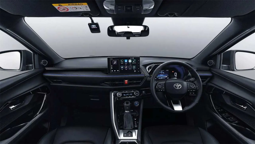 درون کابین نیز تم تیره ادامه دارد. صندلیها با چرم مصنوعی پوشیده شدهاند و بخشهایی مانند فرمان و کنسول مرکزی از چرم طبیعی بهره میبرند. ازآنجاییکه نایتشید بر اساس فولترین تیپ یاریس کراس ساخته شده، امکانات استانداردی نظیر سقف پانورامیک ثابت، شارژر بیسیم، نمایشگر ۱۰.۱ اینچی، درب صندوق برقی و پکیج ایمنی Safety Sense تویوتا را در خود جای داده است.