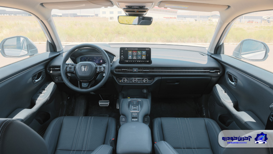 وقتی وارد کابین هوندا ZR-V e:HEV می شوید اولین چیزی که توجه را جلب می کند همان سبک طراحی مینیمال جدید هونداست؛ سبکی که در نسل تازه محصولات این برند دیده می شود و ترکیبی از خطوط ساده، حجم های افقی و اجتناب کامل از شلوغی است. داشبورد با قطعه مشبک سرتاسری مخصوص تهویه، ظاهر بسیار یکپارچه و منظمی ایجاد کرده و احساس می کنید با کابینی طرف هستید که بیش از ظاهر به کاربردی بودن اولویت داده است. هوندا در این بخش تلاش کرده تجربه راننده محور را حفظ کند بنابراین ارگونومی دکمه ها و محل قرارگیری نمایشگرها دقیقاً طوری طراحی شده که دست شما کمترین حرکت اضافه را انجام دهد.