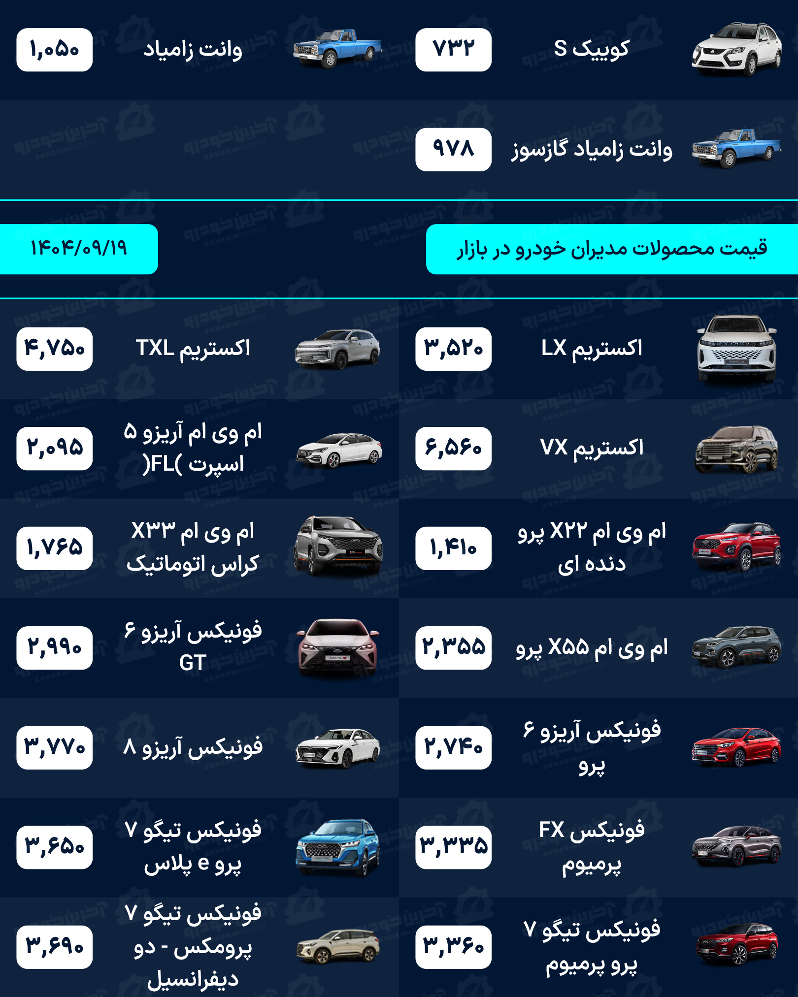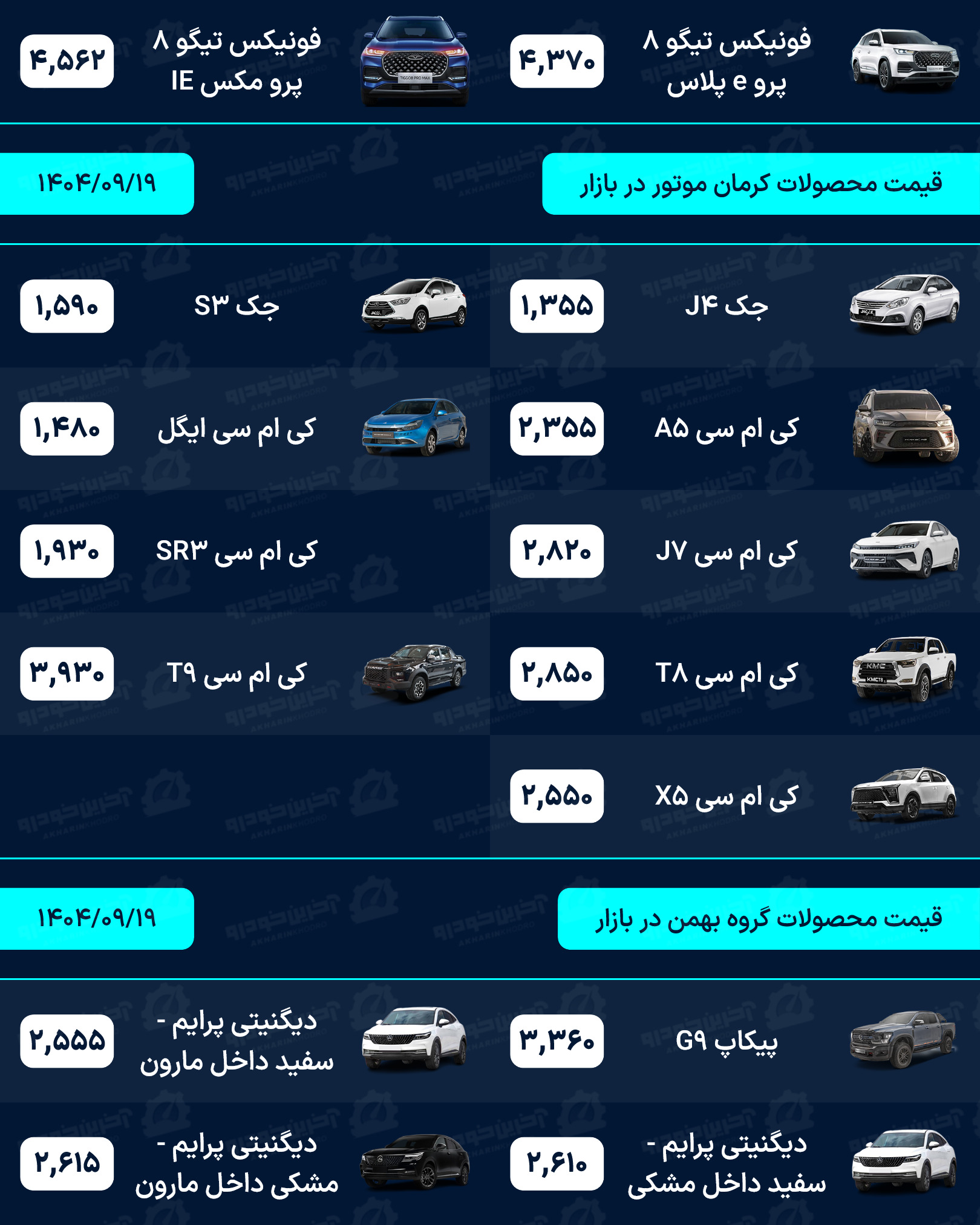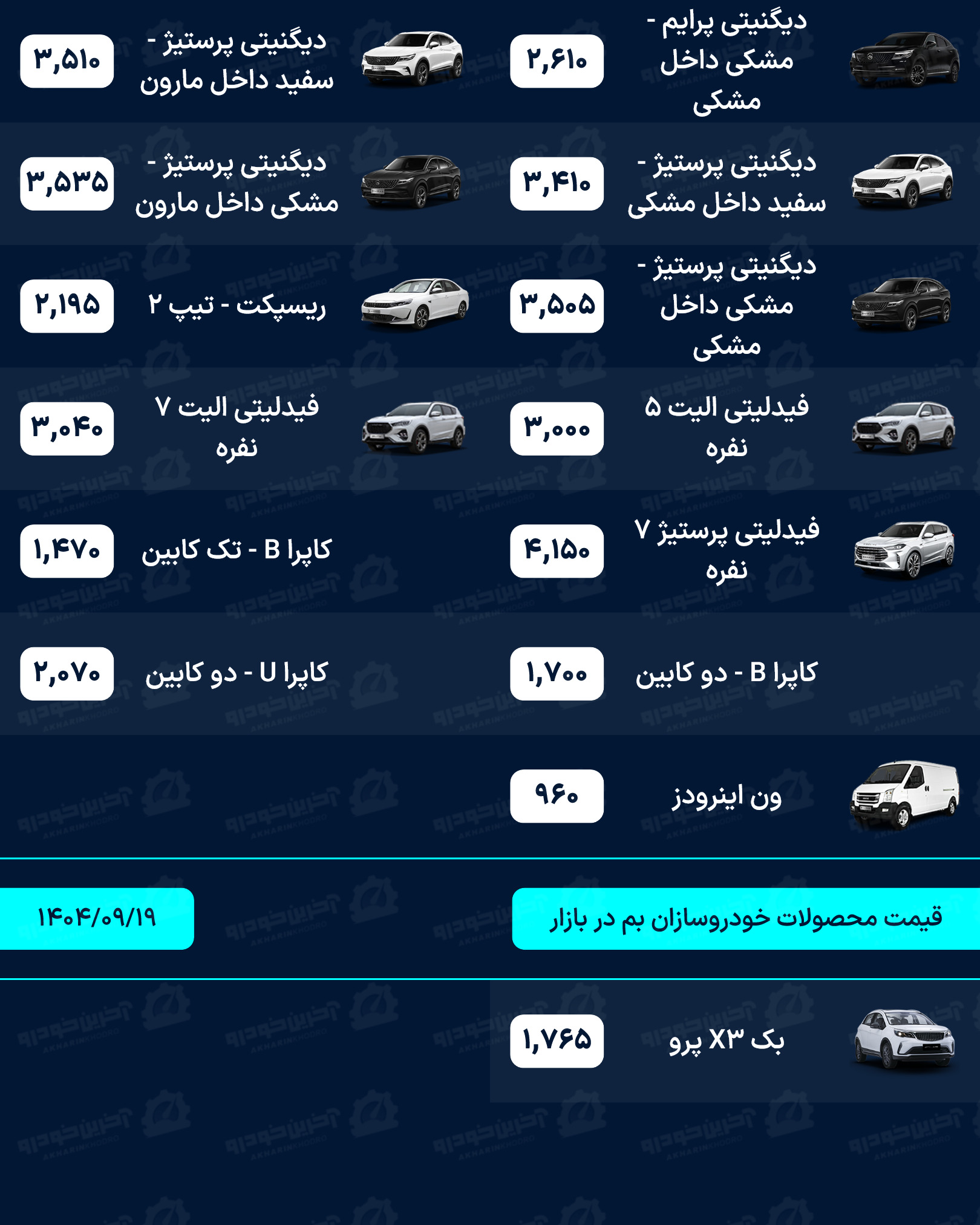 آخرین خودرو/لیستی کامل از قیمت خودروهای صفر کیلومتر داخلی، مونتاژی و وارداتی بازار امروز چهارشنبه مورخ 12 آذر 1404
