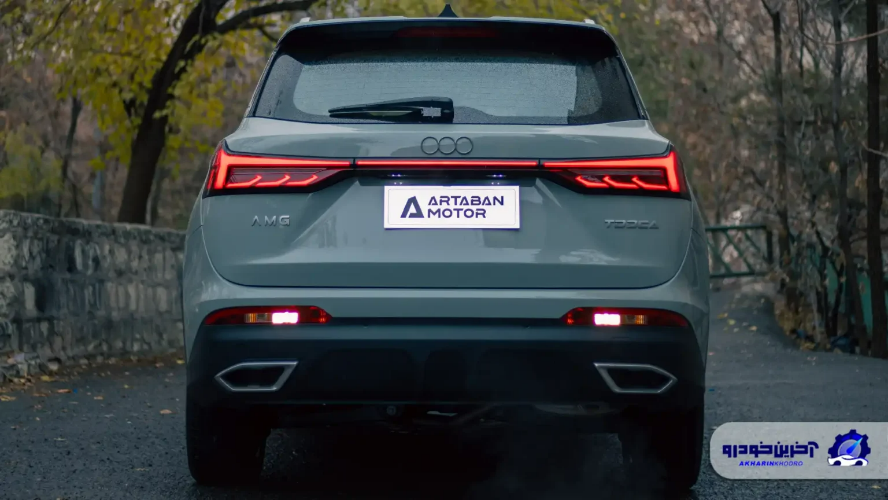 نمای عقب AMG TOOCA ترکیبی از سادگی و کارکرد گرایی است. چراغ های عقب با طراحی نسبتاً صاف و کشیده، عرض خودرو را تقویت می کنند و اتصال آن ها با یک نوار کرومی، نوعی هماهنگی با طراحی جلو ایجاد کرده است. با این وجود، شکل کلی درِ صندوق و سپر کمی محافظه کارانه است و حس تازگی زیادی منتقل نمی کند. استفاده از یک دیفیوزر تزئینی یا حجم دهی بیشتر در بخش پایینی می توانست چهره عقب را جذاب تر و پویاتر کند. با این حال، نظم و تناسب فرم ها باعث می شود نمای عقب آزاردهنده یا شلوغ به نظر نرسد.