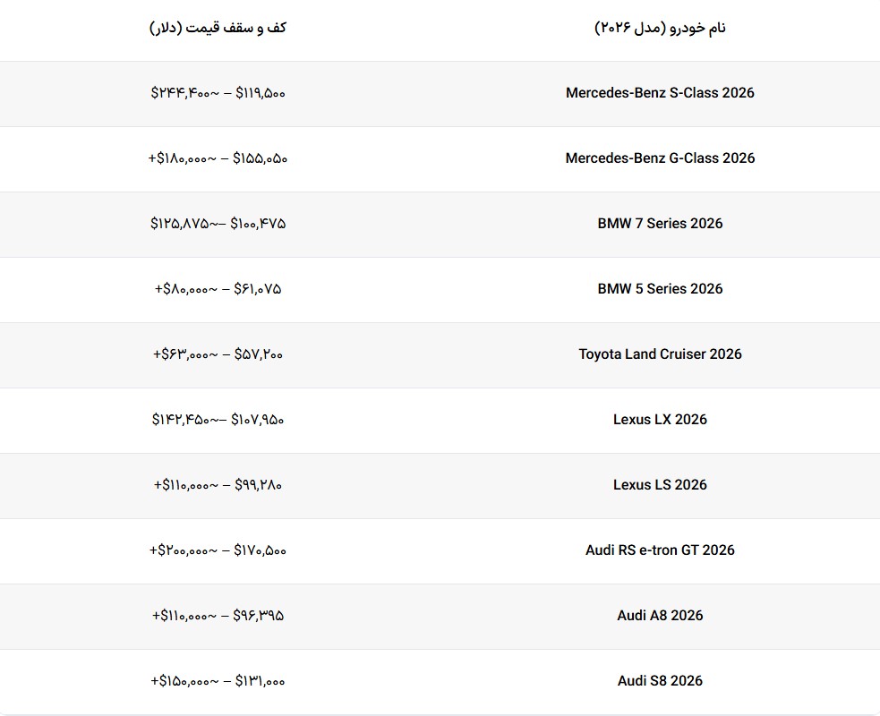 مدتها بود که خودروهایی مانند بنز جیکلاس، لکسوس LX ۵۷۰، تویوتا لندکروز، بنز S کلاس، بیامو سری ۷ و … در نسخههای بروز خود در ایران حضور نداشتند و تنها برای افراد خاص امکانپذیر بود. اما از این پس این خودروها در کشور و به ویژه در خیابانهای سه منطقه اول تهران دیده خواهند شد. افرادی که ۶۰ میلیارد تومان برای آنها مانند ۶۰ میلیون تومان است، با اشتیاق خودروهای مورد علاقه خود را وارد یا خریداری میکنند تا در خیابانها و محافل خودنمایی کنند.