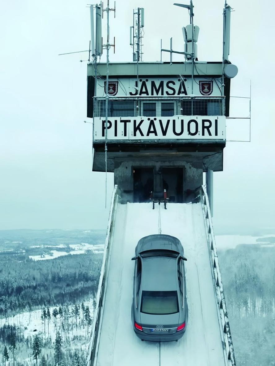 عصر ایران/ آئودی در سال ۱۹۸۶ توانایی سیستم کواترو را با راندن یک آئودی ۱۰۰ کواترو که تقریباً کاملاً استاندارد بود از روی سکوی پرش اسکی پیتکاووری در شهر یامسا فنلاند ثابت کرد؛ سکویی با شیب ۳۷٫۵ درجه که پوشیده از برف بود.