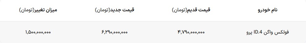 افزایش قیمت فولکس واگن ID.4 پرو اعلام شد – دی ۱۴۰۴