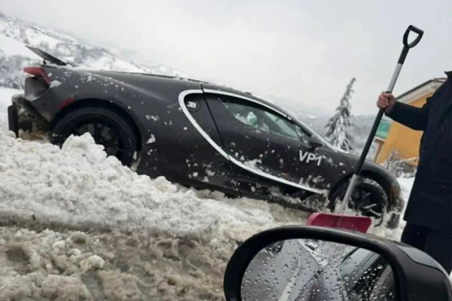 در یکی از تصاویر، فردی دیده میشود که با یک بیل معمولی در حال کنار زدن برفها از اطراف این خودروی چند میلیون یورویی است. شاید در نگاه اول تصور کنید که راننده کنترل ماشین را از دست داده و از جاده منحرف شده، اما شواهد چیز دیگری میگویند. بهاحتمالزیاد، ماجرا سادهتر و البته بامزهتر از یک تصادف است. تصویر دوم همان پروتوتایپ با کد VP1 را نشان میدهد که تقریباً تا نیمهی چرخها در برف فرو رفته است. وجود لایهای یکدست از برف روی سقف و بدنه، این فرضیه را تقویت میکند که خودرو شب را در آن مکان پارک بوده و احتمالاً قربانی یک ماشین برفروبِ عبوری شده که حجم زیادی از برف را روی این جواهر مهندسی پاشیده است. دیدن چنین صحنهای برای طرفداران خودرو دردناک و همزمان جالب است.