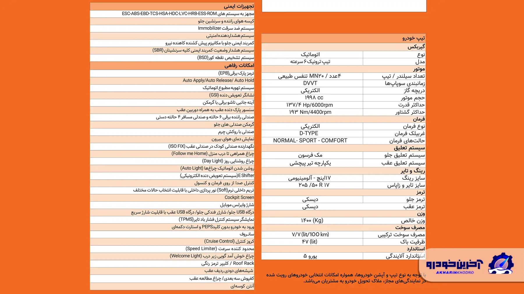 مشخصات فنی سایپا آریا