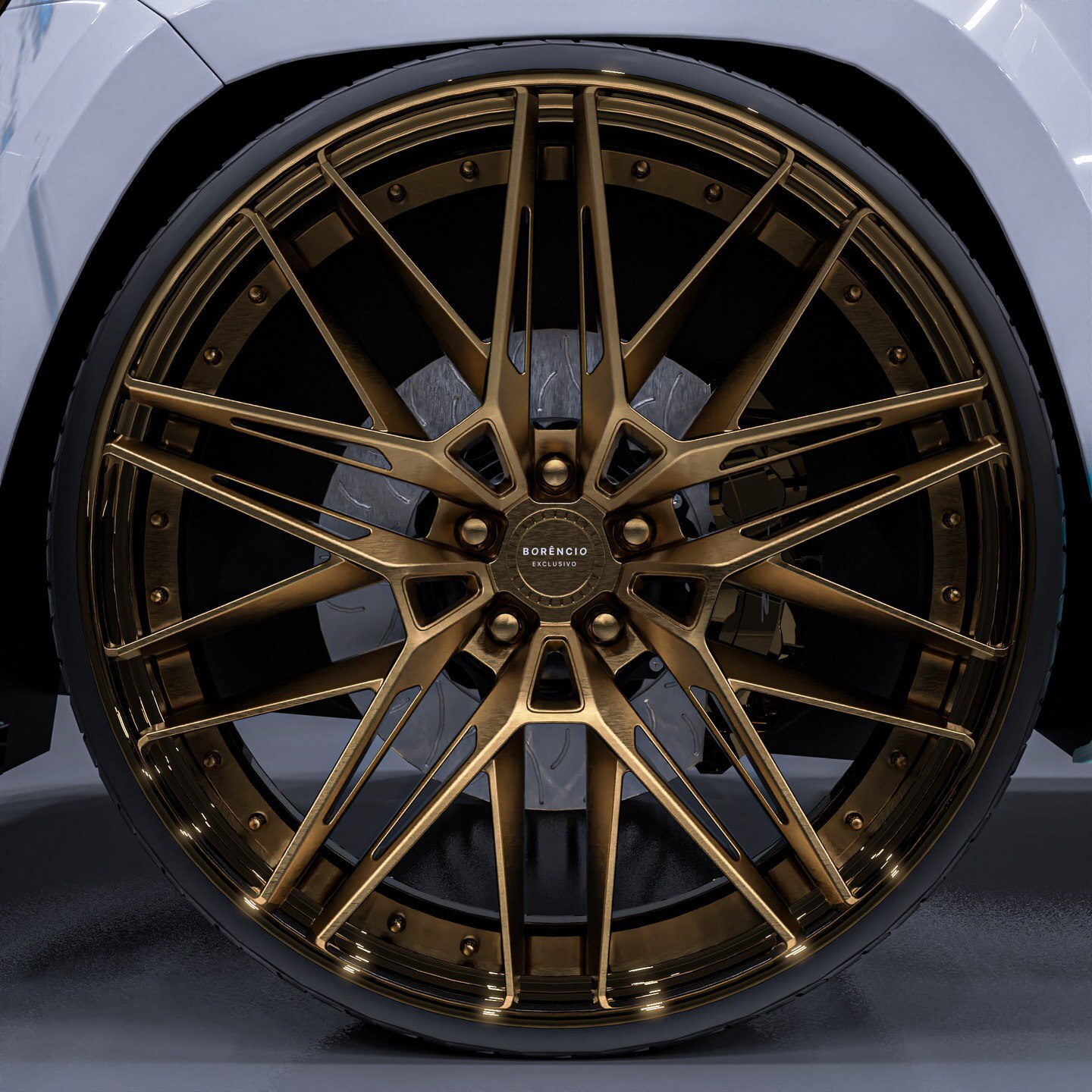 علاوه بر تغییرات ظاهری در بدنه، این جیپ ترکهاوک به رینگهای سفارشی مجهز شده است. این رینگها با ترکیب رنگ مسی و پرداخت برسخورده، هارمونی بصری خاصی را با بدنه گرافیکی خودرو ایجاد کردهاند.
