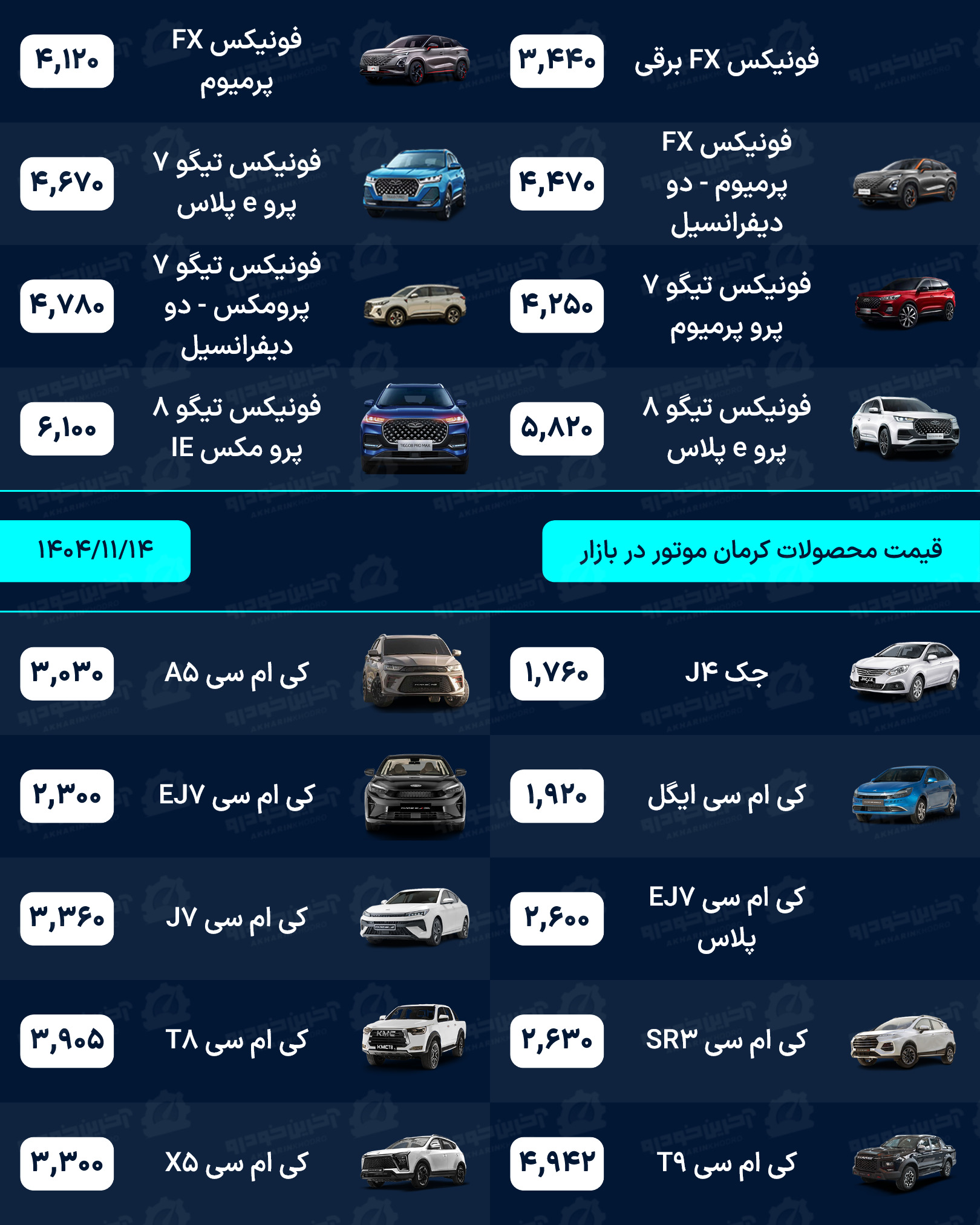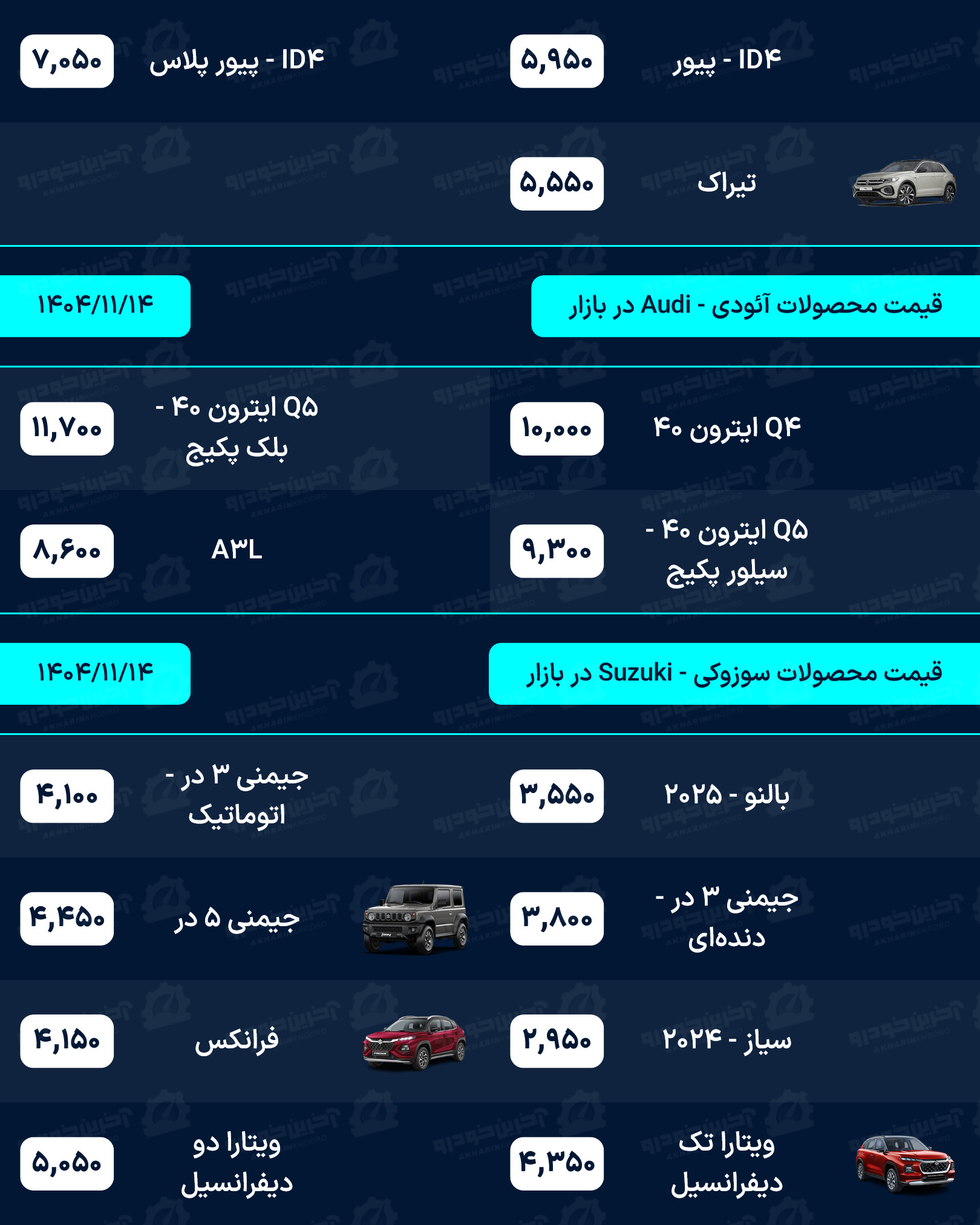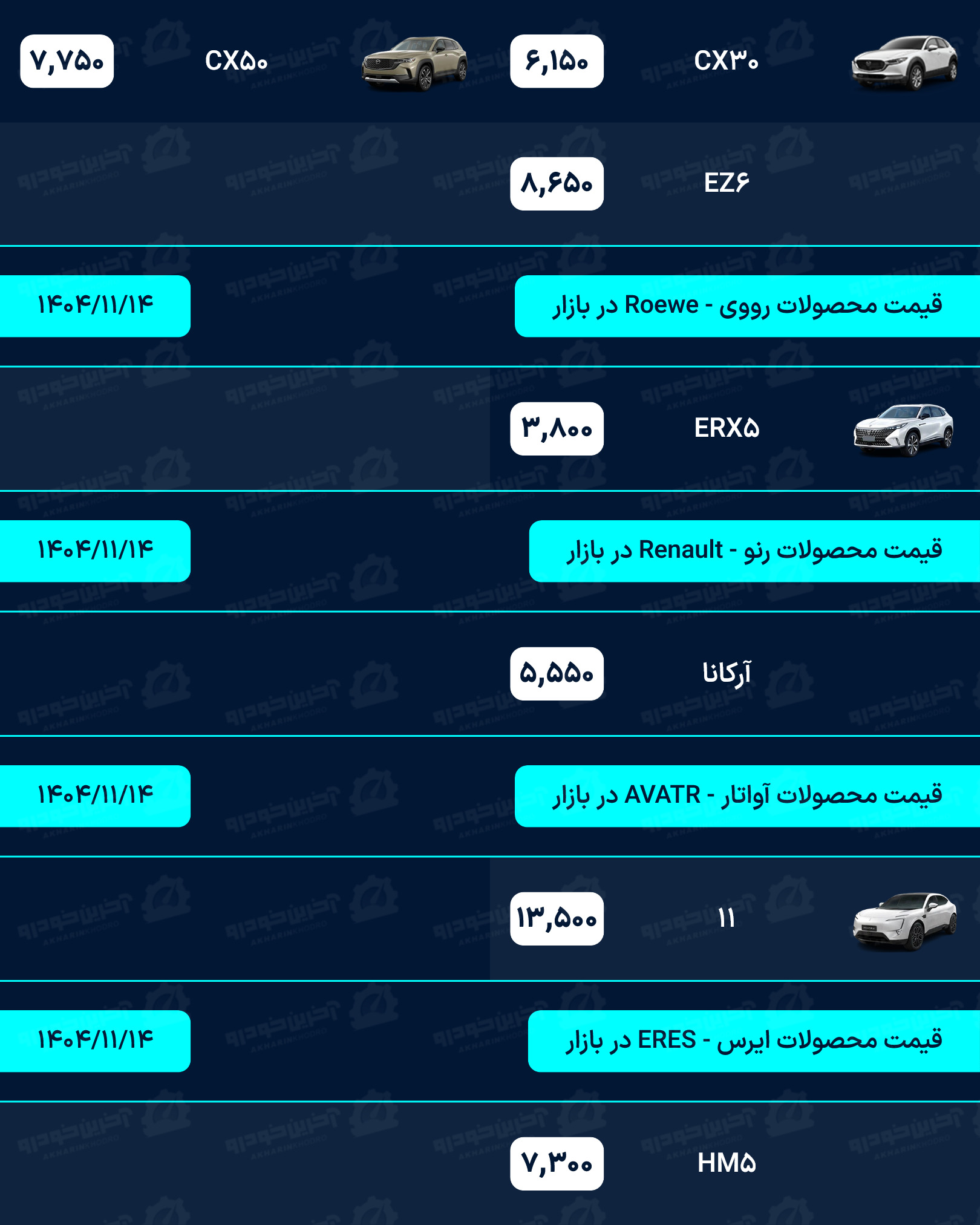 آخرین خودرو/لیستی کامل از قیمت خودروهای صفر کیلومتر داخلی، مونتاژی و وارداتی بازار امروز سه شنبه مورخ 14 بهمن 1404