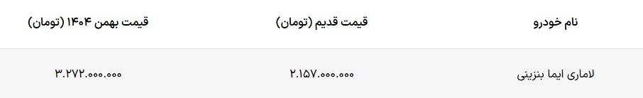 قیمت جدید لاماری ایما اعلام شد – بهمن ۱۴۰۴