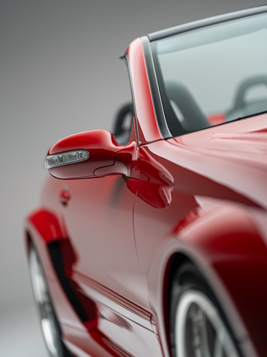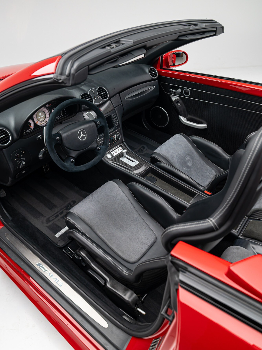 نمونه مورد بحث با رنگ قرمز «Fire Opal»، یکی از پنج نسخه کابریولت تولید شده با این رنگ خاص در جهان است. این خودرو که ابتدا در آلمان تحویل داده شده بود، بعدها به امارات متحده عربی منتقل شد و در مالکیت چندین خانواده ثروتمند مرتبط با حکومت قرار گرفت. این سوابق در کنار ویژگیهای فنی، این خودرو را به یک مدل استثنایی در میان مجموعهداران تبدیل کرده است.