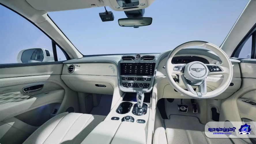 در فضای داخلی این بنتلی بنتایگا مخصوص بانوان نیز تم آبی به صورت کنترلشده و هنرمندانه ادامه پیدا کرده است. نشانهای بنتلی روی پشتی صندلیها با نخ آبی گلدوزی شدهاند و نقوش گلهای ظریف آبی روی داشبورد دیده میشود.