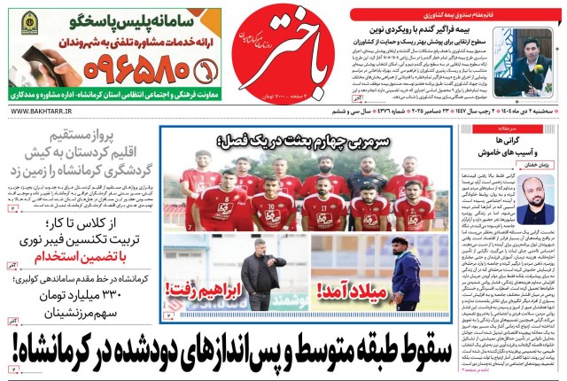 💢 روزنامه باختر سه شنبه 2 دی ماه 1404 "مخاطبان گرامی آخرین خبر؛ برای ارسال تصاویر؛ لطفا در صفحه عکاسخونه؛ آیکون دوربین در بالای صفحه را انتخاب نموده و تصویر خود را ارسال فرمایید."