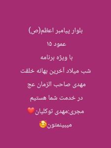اللهم صل علی محمد و آل محمد و عجل فرجهم و اهلک اعدائهم اجمعین "مخاطبان گرامی آخرین خبر؛ برای ارسال تصاویر؛ لطفا در صفحه عکاسخونه؛ آیکون دوربین در بالای صفحه را انتخاب نموده و تصویر خود را ارسال فرمایید."