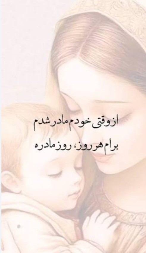 بزاره چون میدونه هیچکس مثل خودش فرزندش رو دوست نخواهد داشت مادر میتونه جای همه رو بگیره ولی کسی نمیتونه جاشو بگیره ،،، نه ماه در شکمش دو سال در دامنش و یک عمر در زندگیش چیز دیگری ندارد برای اثبات محبتش،،، سلامتیه همه مادران دنیا "مخاطبان گرامی آخرین خبر؛ برای ارسال تصاویر؛ لطفا در صفحه عکاسخونه؛ آیکون دوربین در بالای صفحه را انتخاب نموده و تصویر خود را ارسال فرمایید."
