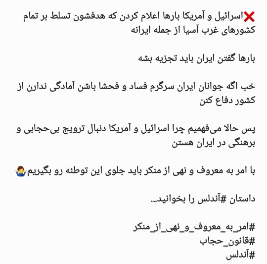 چرا آمریکا و اسرائیل به دنبال ترویج بیحجابی در ایران هستند؟ "مخاطبان گرامی آخرین خبر؛ برای ارسال تصاویر؛ لطفا در صفحه عکاسخونه؛ آیکون دوربین در بالای صفحه را انتخاب نموده و تصویر خود را ارسال فرمایید."