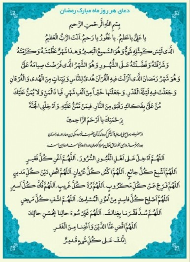 دعای هر روز ماه مبارک رمضان