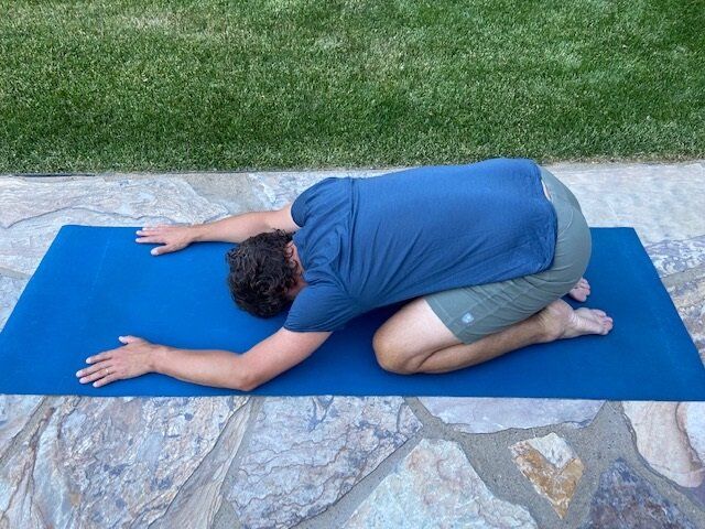 با کف دست‌ها و زانوهایتان روی زمین خم شوید، به طوری که فاصله بین آن‌ها به اندازه طول شانه و لگن باشد. به آرامی ستون فقرات خود را به سمت بالا فشار دهید و چانه خود را به سمت سینه خود پایین بیاورید. پنج ثانیه نگه دارید و استراحت کنید. حالا به عقب برگردید و بنشینید و لگن خود را به پاشنه‌هایتان بچسبانید. بازوهای خود را به سمت بیرون دراز کنید و پنج ثانیه نگه دارید. آکادمی جراحان ارتوپدی آمریکا توصیه می‌کند که این حرکت را روزانه ده بار تکرار کنید.