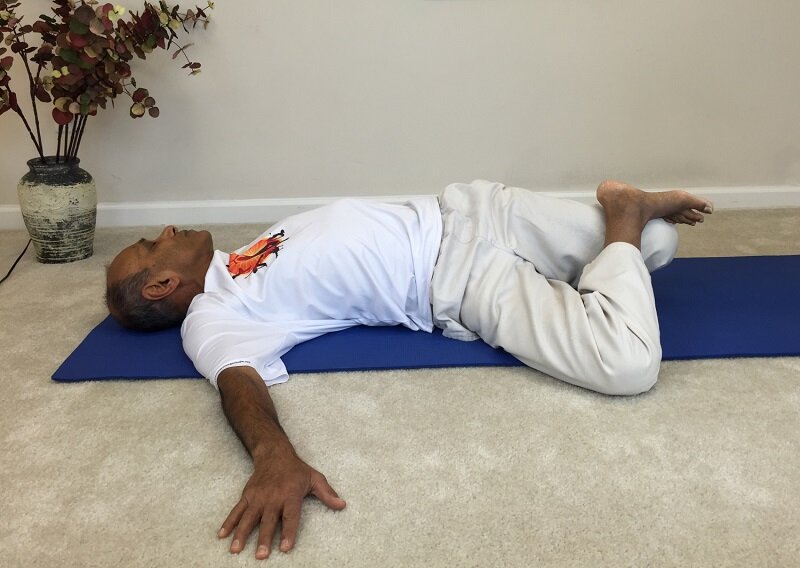 چرخش خوابیده به پشت، کششی است که به کاهش تنش در قسمت پایین کمر و بهبود تحرک ستون فقرات کمک میکند. این حرکت میتواند به شل شدن عضلات کمر و ایجاد احساس رهایی از استرس در سراسر بدن کمک کند. به پشت دراز بکشید، یک زانو را به سمت سینه خود بیاورید و به آرامی آن را در امتداد بدن خود هدایت کنید و بازوی مخالف خود را دراز کنید. این حالت را برای چند نفس نگه دارید، سپس سمت بدن را عوض کنید.