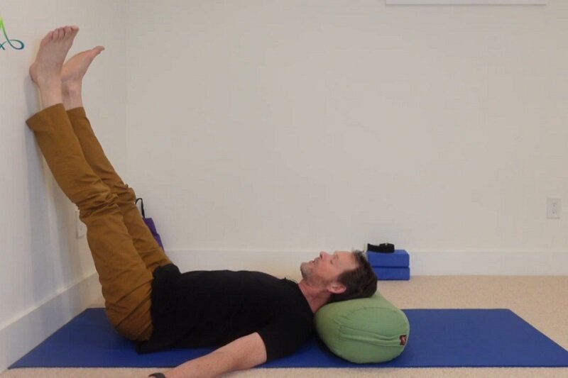 این یک حرکت ترمیمی است که میتواند به رفع خستگی پاها و بهبود گردش خون کمک کند. به پشت دراز بکشید و پاهایتان را به دیوار تکیه دهید. اجازه دهید بازوهایتان به راحتی در کنار بدنتان قرار گیرند. نفس عمیق بکشید و اجازه دهید جاذبه به آرامی عضلات همسترینگ شما را کشیده و کمرتان را شل کند.