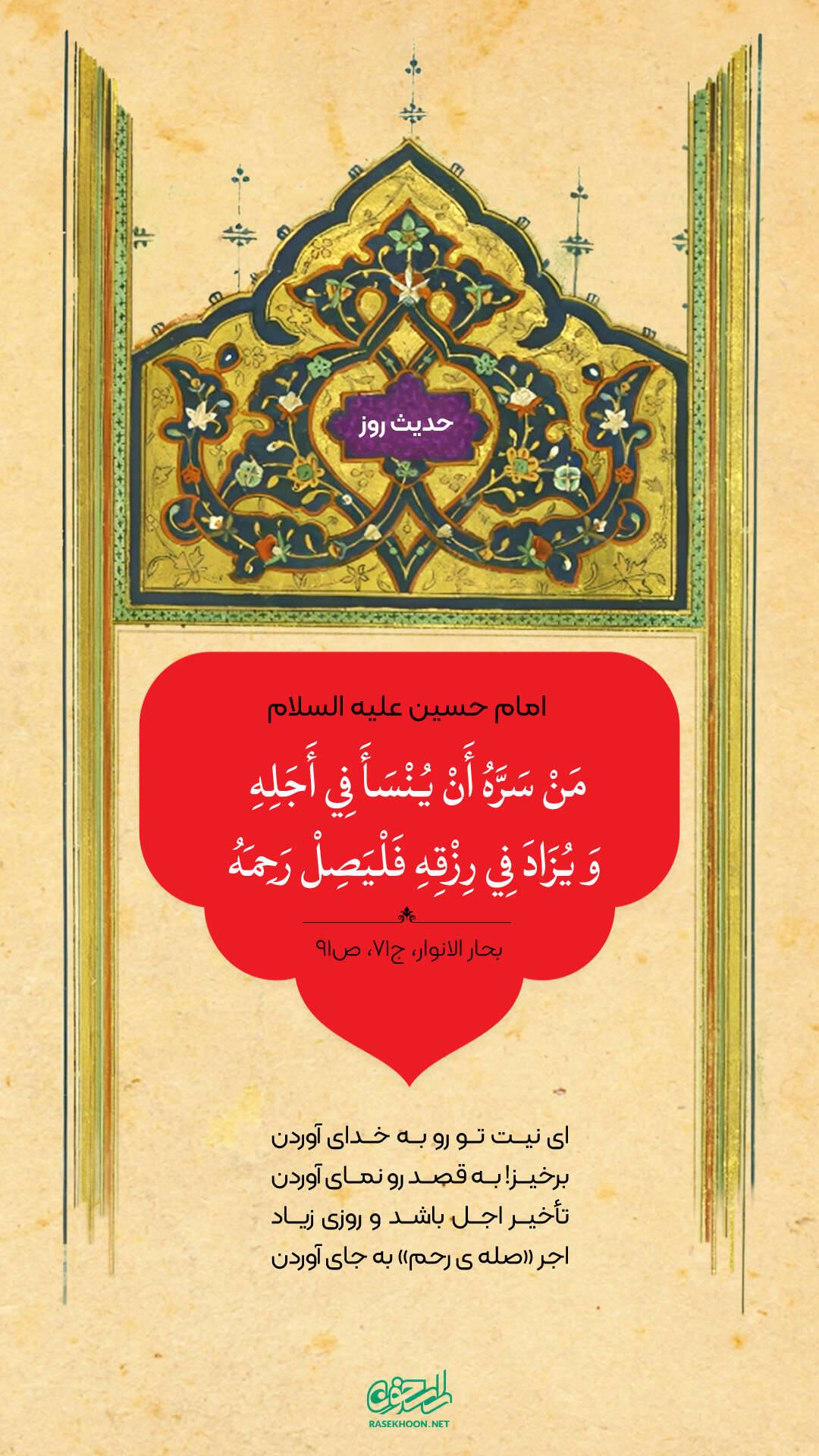 کسی که دوست دارد اجلش به تأخیر افتد و رزقش زیاد شود صله ی رحم انجام دهد.