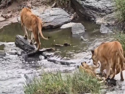 اولین عبور تولهشیرها از رودخانه؛ درسی از غریزه مادری در حیاتوحش
