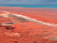 ساحل سرخ جزیره هرمز بعد از بارندگی در اوج زیبایی