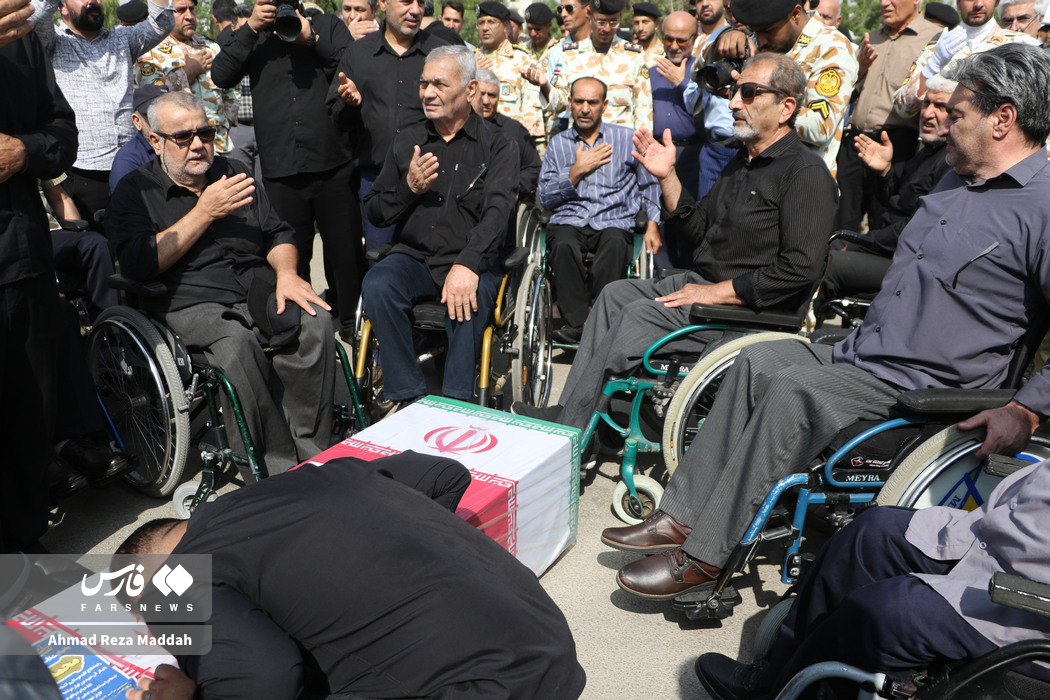فارس/ آیین وداع با پیکر مطهر جانباز ۷۰ درصد شهید «محمدرضا دهقانی» با حضور امیر نوذر نعمتی جانشین فرمانده نیروی زمینی ارتش جمهوری اسلامی ایران، خانوادههای معزز شهدا، جانبازان و همرزمان این شهید، امروز دوشنبه ۲۳ مردادماه در تیپ ۵۵ هوابرد شیراز برگزار شد.