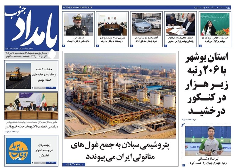 تسنیم/ تصاویر منتخب صفحات نخست روزنامههای سهشنبه ۱۵ مهر در استان بوشهر منتشر شد.