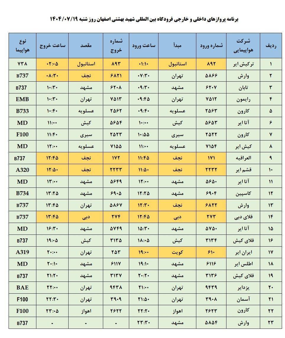 صدا و سیما/ برنامه پروازهایِ امروزِ فرودگاه بینالمللی شهید بهشتی اصفهان را اینجا ببینید.