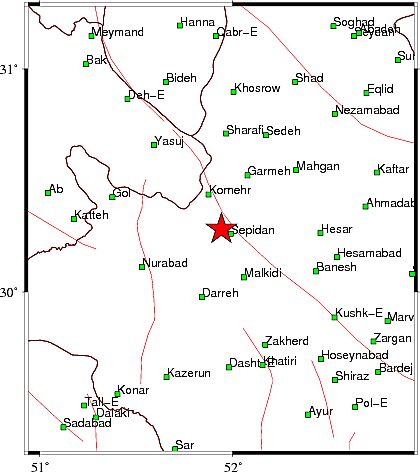 مرکز زلزله در موقعیت ۳۰.۲۸ شمالی و ۵۱.۹۴ شرقی ثبت شد.