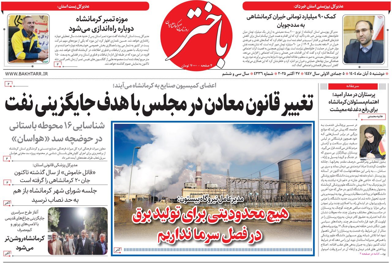 مهر/ صفحه اول روزنامههای کرمانشاه در روز دوشنبه ۵ آبانماه را بخوانید.